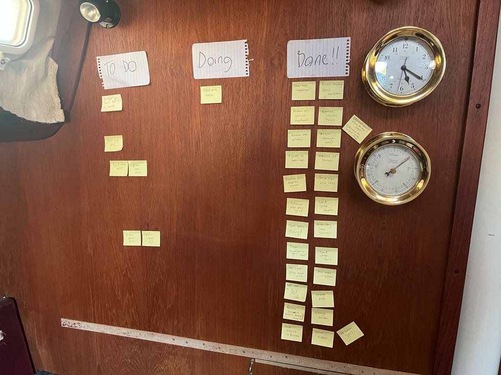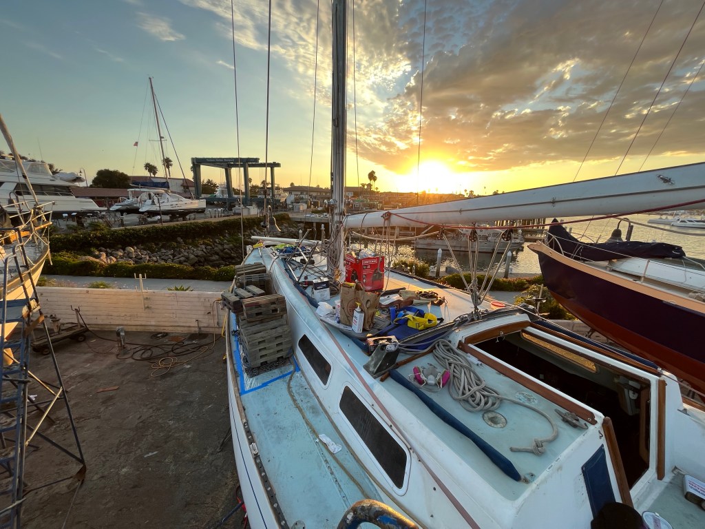 Soaking in last bits of sunPolishing chain plates – 2 hrs per plate (there are 6)Our new amazing freezer!Refit almost done!Ventura flooding from the Jan rainsMold in the V berth we discovered 2 days before our already rescheduled departure